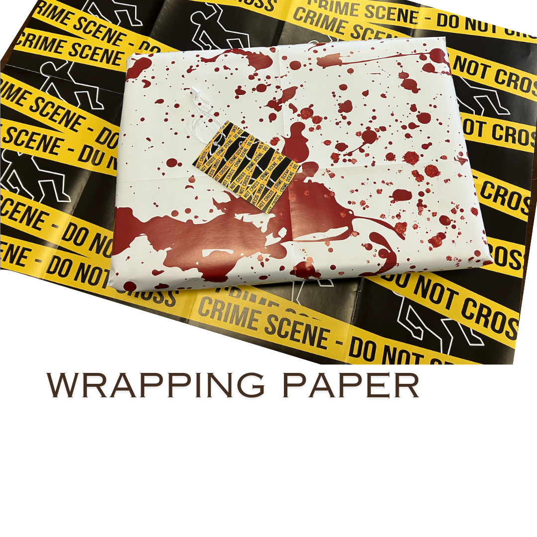 Delight the true crime or Detective fan in your life with our crime scene themed wrapping paper and gift tags.