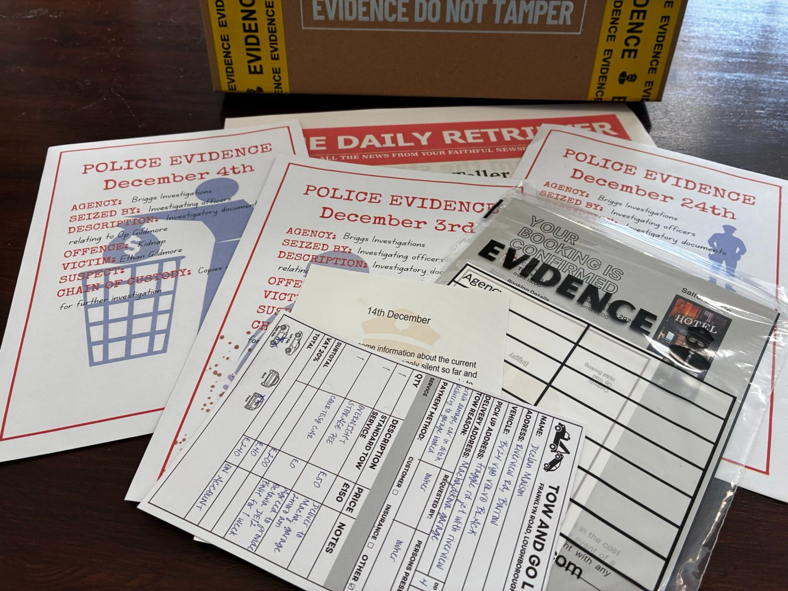 How it works: Play solo, as a couple, or with a group at home. Your case box holds 24 daily envelopes of fresh evidence—witness statements, photographs, phone records, police reports, and more. Open one each day to follow the investigation in real time, with the final pieces landing on December 24. When you’ve named your offender and built your case, check your reasoning in our website’s answers section.